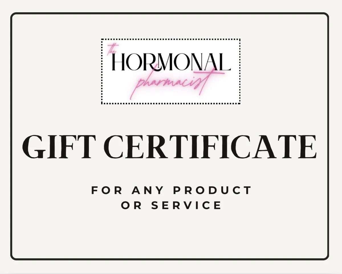 The Hormonal Pharmacist gift card lets her choose exactly what she needs, whether it’s hormone testing, supplements, wellness programs, or a personalized consultation.